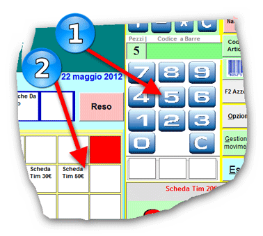 Per vendere più pezzi dello stesso articolo, digitate prima la quantità cliccando sui numeri presenti sullo schermo , poi scegliete l'articolo tramite il lettore di codice a barre o con il click sul pusante abbinato all'articolo.